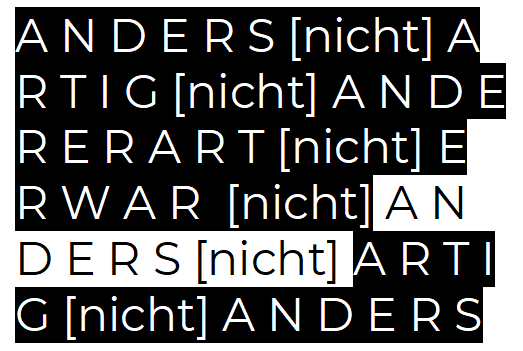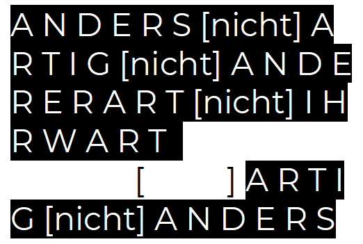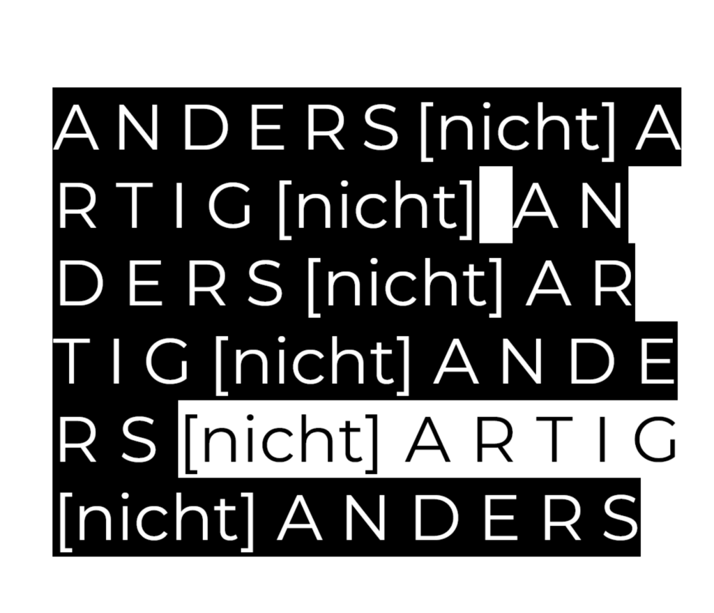 Was kann A N D E R S [nicht] A R T I G bedeuten: Ist es ANDERSARTIG oder nicht ANDERSARTIG? Was soll ARTIG sein und wer bestimmt was ANDERS ist? Wir stellen die Frage, was als „normal“ gilt und wie dies bestimmt wird. Was bedeutet es, etwas oder jemanden als „andersartig“ zu bezeichnen? Andersartigkeit kann vieles zwischen bewusster Rebellion oder ungewollter sozialer Ausgrenzung sein.