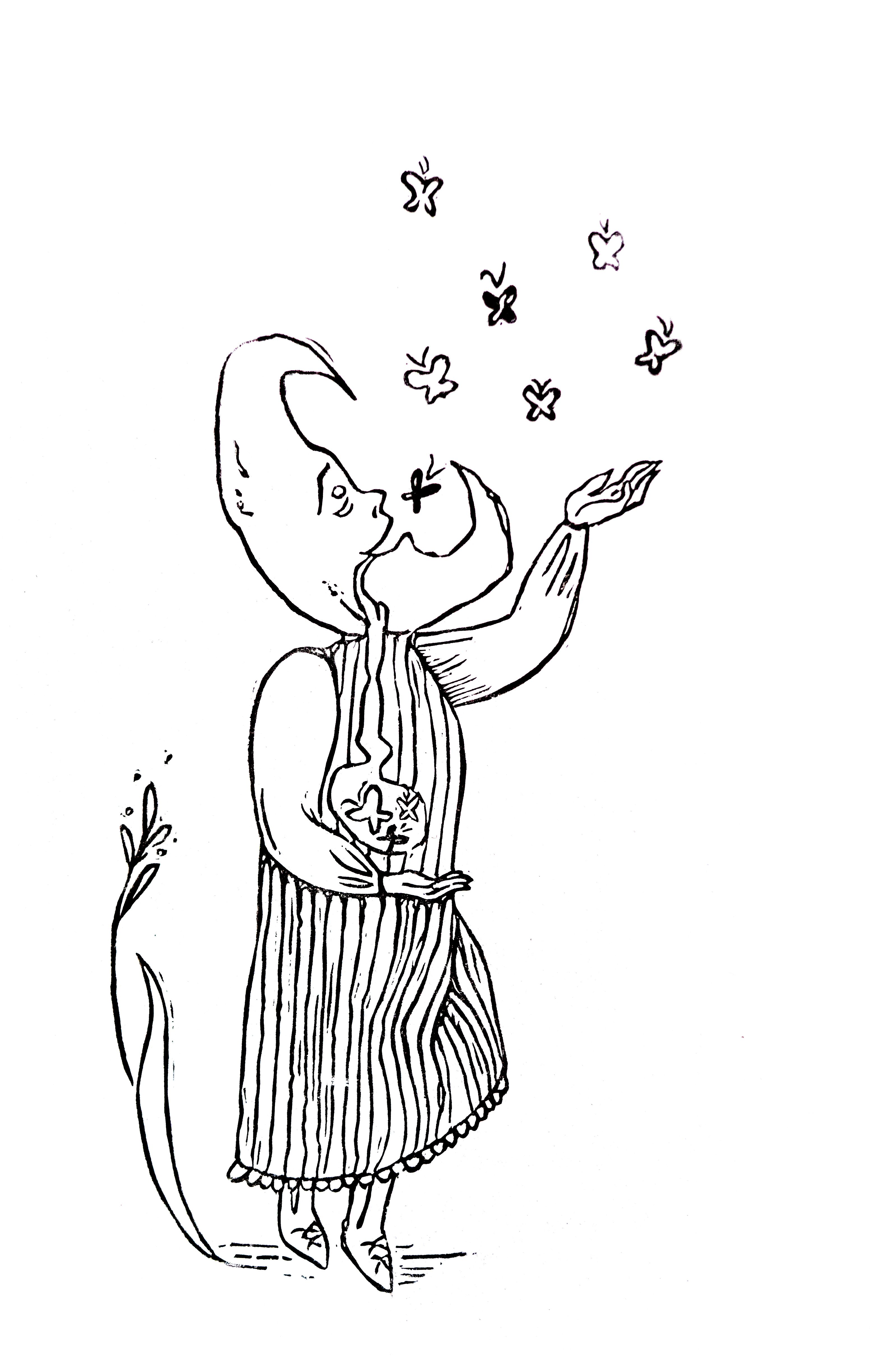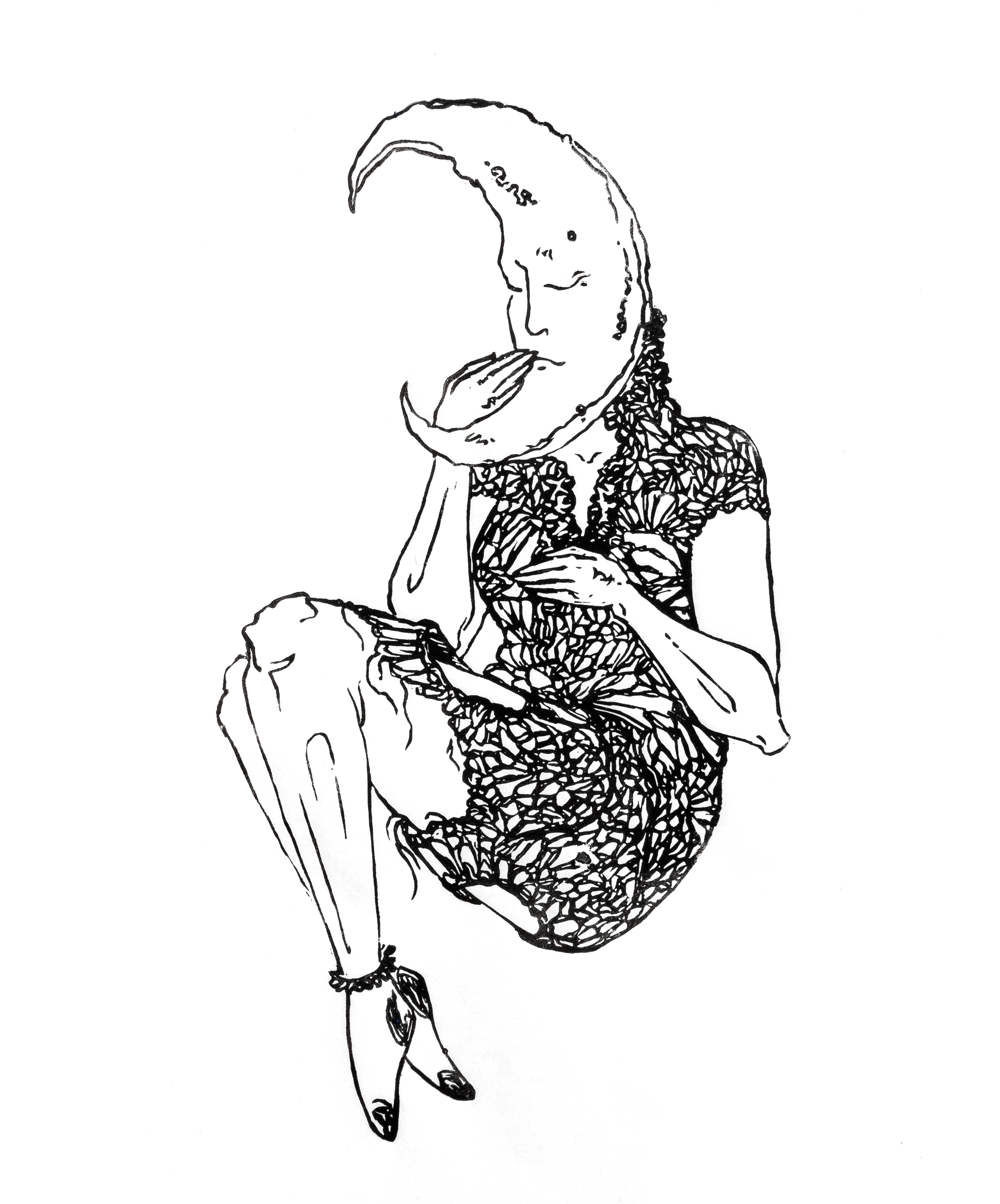 Geschichten vom Mann im Mond sind beispielsweise aus Peterchens Mondfahrt bekannt. Wenngleich diese Figur dort nicht ungefährlich erscheint, verbreitet das Märchenspiel dennoch eine verträumte Abendstimmung. Diese Geschichte erzählte Joan nicht – ich kenne sie aus meiner Kindheit. Mit Joan Schaafs Illustrationen fühle ich mich durch die Darstellungsweise an Märchen erinnert. Sie hat einige Kinderbücher illustriert. Dennoch gehen ihre Motive in der Serie Melancholic Moonfaces über Märchen hinaus, erzählen durch ihre Sequenzialität vielleicht eher die Geschichten unserer eignen Erinnerungen.